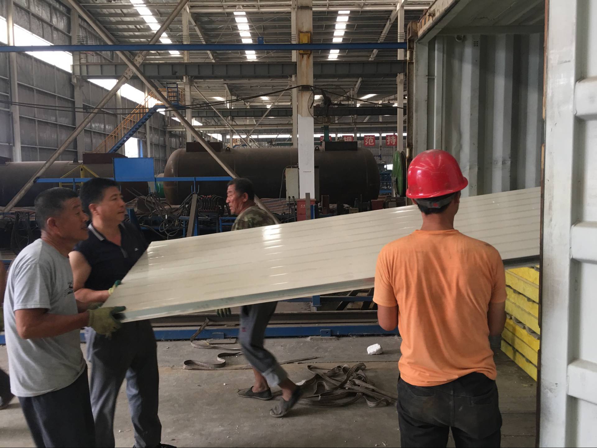 車間鋼結構房屋保溫彩鋼板裝箱現場
