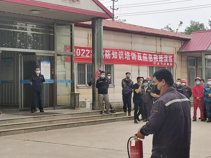 2022年6月15日華油飛達集團開展人員應急逃生及消防器材使用為內容的夏季消防安全實操演習活動。