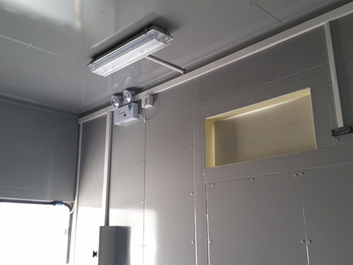 光伏逆變房設置有通風阻塵結構系統,內部增加活性高密防塵裝置,可拆卸式慮棉網,雙排風系統便于電力電子設備防塵、通風、散熱等保護措施。箱體底部采用防滑花紋板加鋪防靜電地膠,保護內部產品。裝修采用高密度巖棉凈化板,增強內部保溫和隔熱效果,保證設備在超高超低溫度環境中正常運轉,整體內部整潔美觀大方,內部配設雙應急照明措施和消防器具,強度高、密封強、耐腐蝕、耐酸堿、高壽命。在光伏逆變器應用領域取得一致好評。